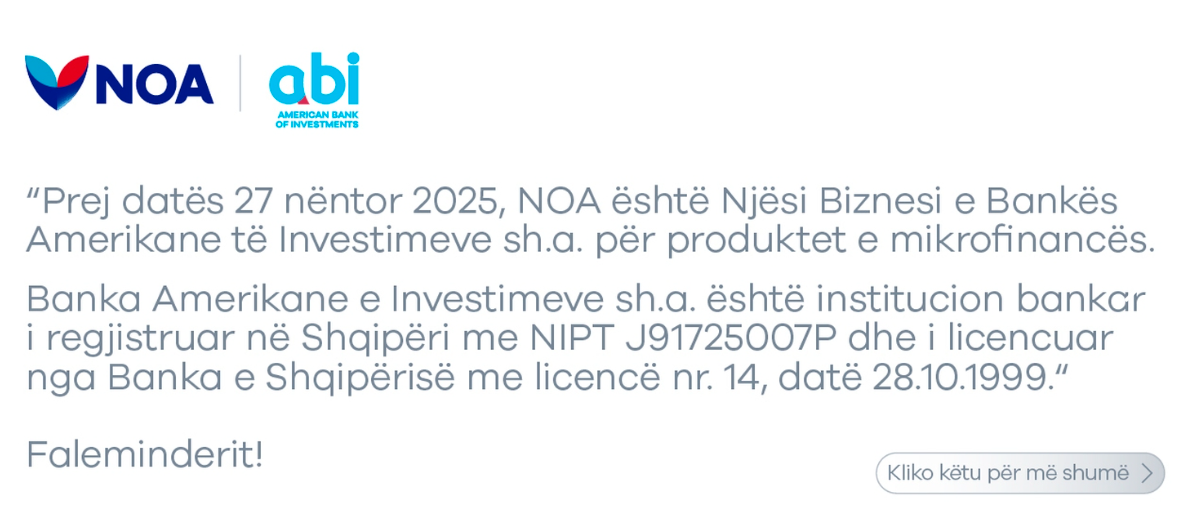 Nga 27 nëntori 2025, NOA është bërë njësi biznesi e ABI Bank. Përtej gjërave të bukura që thonë reklamat e saj, ky është një risk i madh për qytetarët që kanë marrë kredi tek ky institucion financiar. Blerja nuk synon thjesht disa zyra, apo zgjerimin e shërbimeve të bankës në këtë spektër të NOA-s në Shqipëri dhe Kosovë. Në fakt, blerësi është kompania “Tranzit” shpk, që ka fokus kryesor mbledhjen e borxheve dhe trasferimin e pronave të përfituara nga likuidimi. Po si është mundur që të ndodh kaq lehtësisht. Ndikimi politik i Edi Ramës ndaj Bankës së Shqipërisë dhe Autoritetit të Konkurrencës ia bën shumë të lehta operacionet pronarit në letra të ABI Bank, Andi Ballta. Kujtojmë senë krye të rrjetës së merimangës së bankave dhe institucioneve të mikrokredisë së këtij grupi qëndron “Tranzit’ shpk.