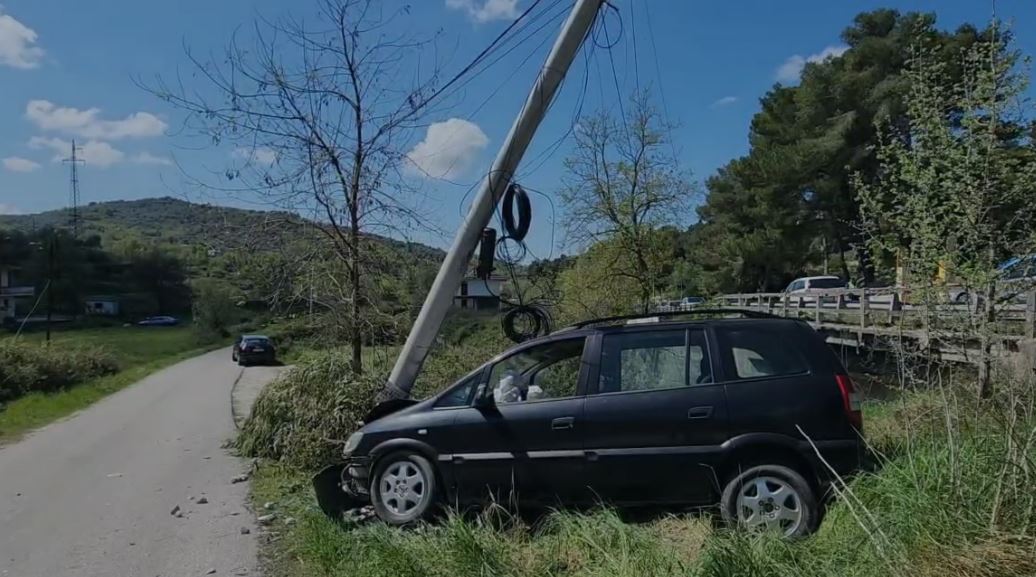 Si pasojë e goditjes së fortë mjeti tip “Opel” ka dalë nga rruga duke u përplasur me shtyllën elektrike dhe një pemë e cila është rrëzuar.