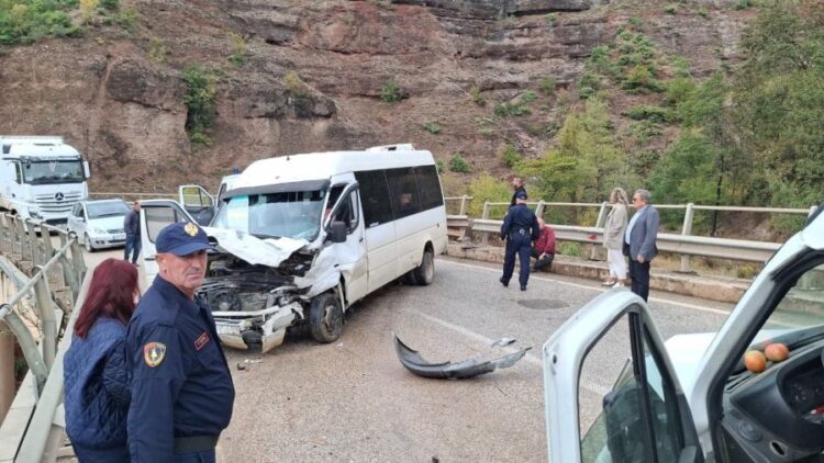 Policia ndodhet në vendngjarje dhe po punon për zbardhjen e plotë të shkaqeve të aksidentit. Të përfshirë në aksident një furgon mallrash dhe një furgon pasagjerësh.