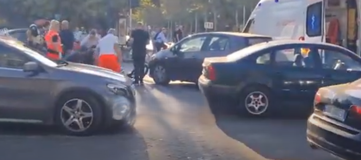 Një aksident ka ndodhur pasditen e sotme në qendër të Tiranës, pranë Piramidës, ku një biçikletë është përplasur nga një makinë.