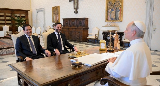 Zëvendëspresidenti i Shteteve të Bashkuara J.D. Vance dhe Sekretari i Shtetit Marco Rubio u pritën në Vatikan të hënën në mëngjes nga Papa Leo XIV, në një takim që u përqendrua në marrëdhëniet dypalëshe dhe bashkëpunimin midis Kishës dhe shtetit. Vance zhvilloi më pas bisedime me Kryepeshkopin Paul Richard Gallagher , Sekretarin e Vatikanit për Marrëdhëniet me Shtetet dhe Organizatat Ndërkombëtare.