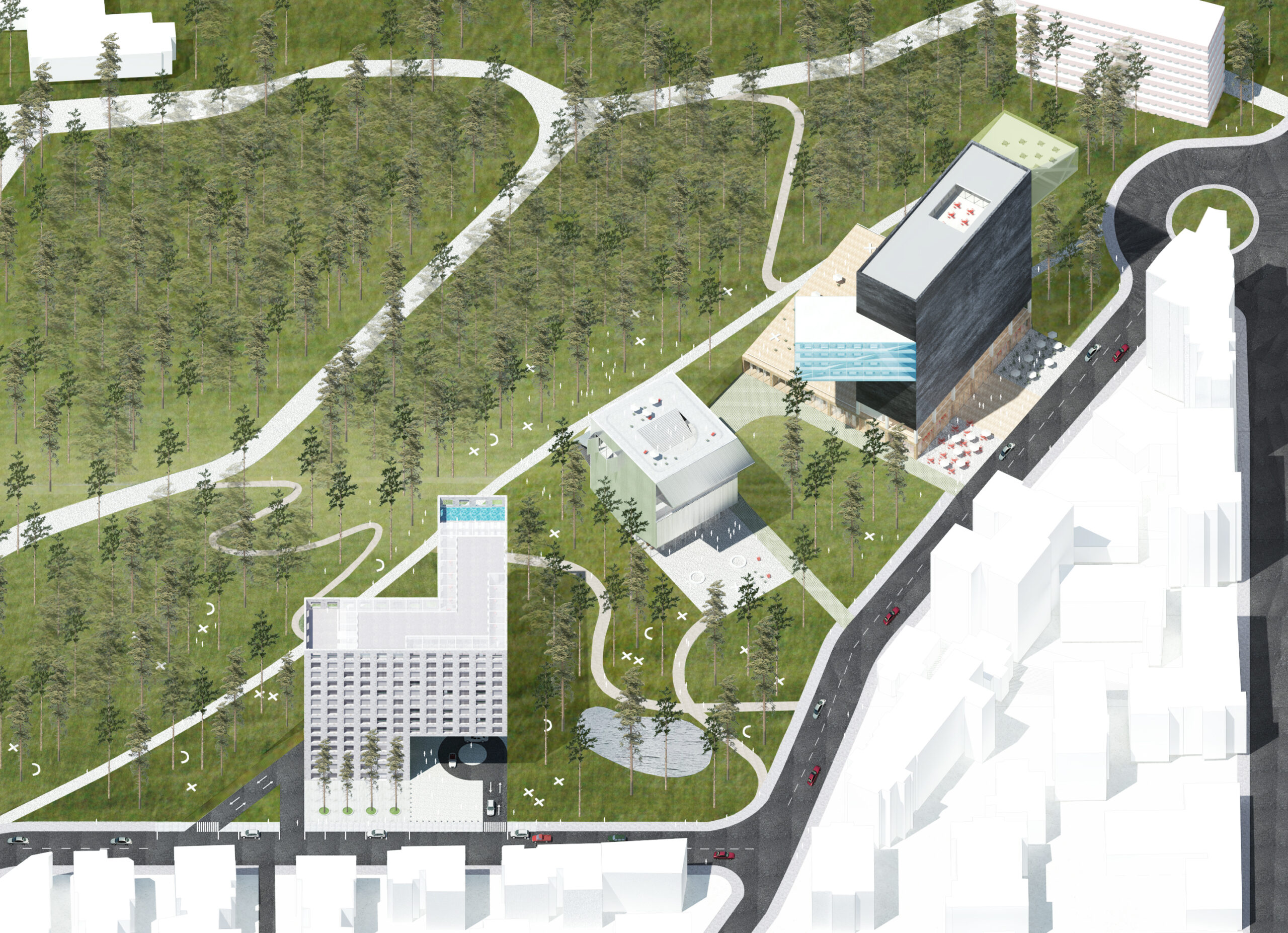 Projekti nuk është bërë publik edhe pse është konceptuar që në vitin 2020. Ai shfaqet në renderët e hotelit 14 katësh që kompania “Nova Construction 2012” po ndërton në zonë. Titullohet “Pieces, Hospitality and The Neë Building of The National Library”.
