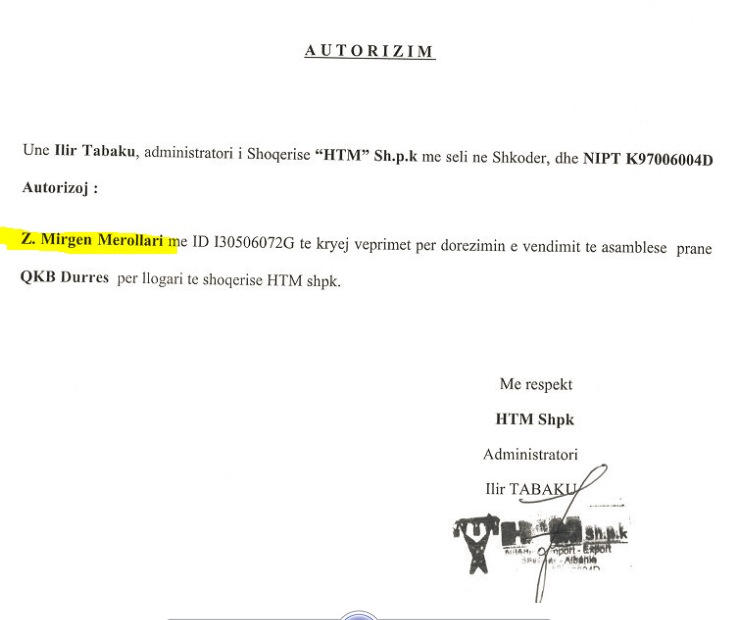 Kështu, shpallet fitues “ARGUS POWER” Sh.p.k me adresë në Durrës (Lagja. Nr. 15, Spitalle, Perballë Kampusit Univesitar Durrës. Kodi postar 2009) aty ku ka qenë kompania “HTM” shpk, ku Merollari ishte punonjës.