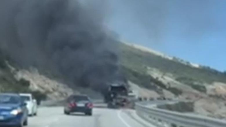 Një autobus pasagjerësh ka marrë flakë në majën e Skërficës, pranë tunelit në aksin rrugor Ura e Kardhiqit-Sarandë.