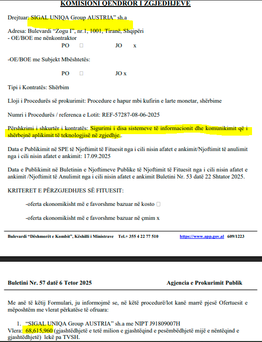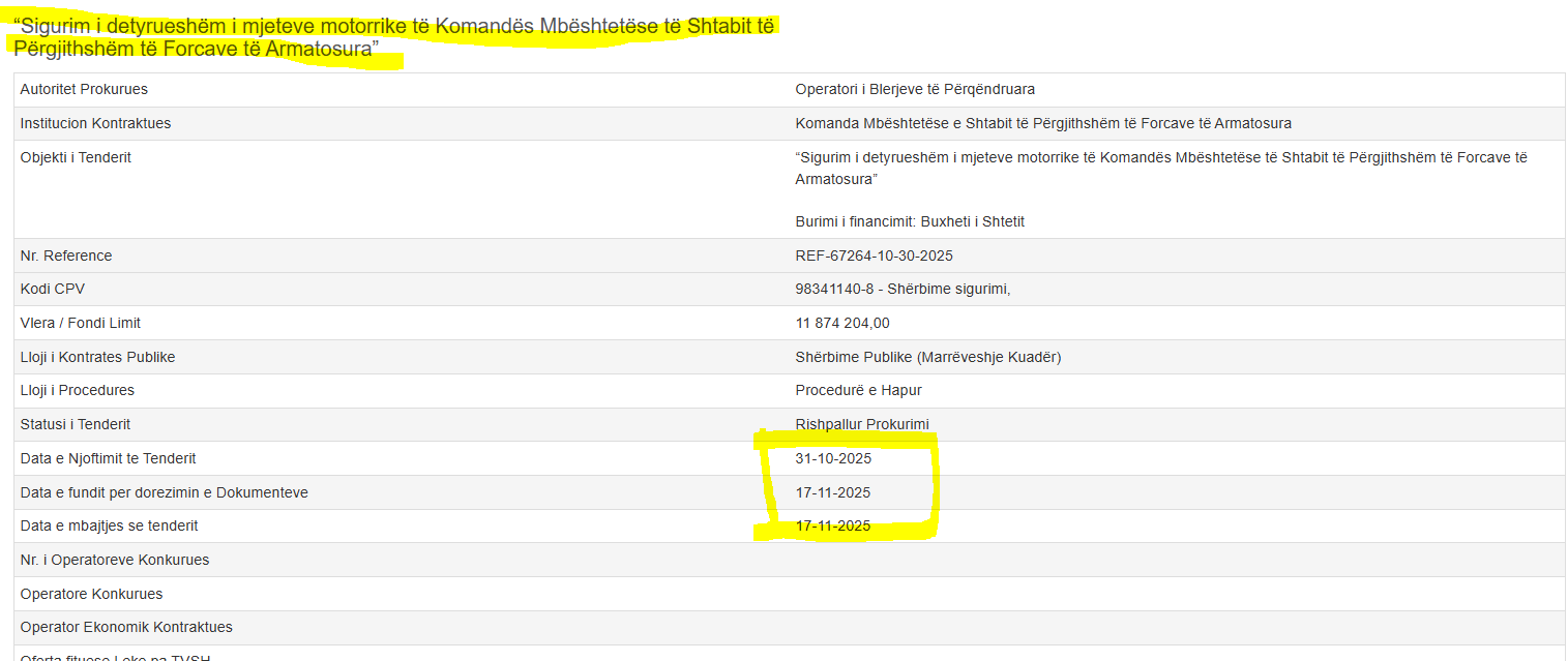Tenderi është rishpallur më 31 tetor 2025 nga Operatori i Blerjeve të Përqendruara dhe duket se ka qenë i paracaktuar që ta fitojë kompania “SIGAL” e Avni Ponarit.
