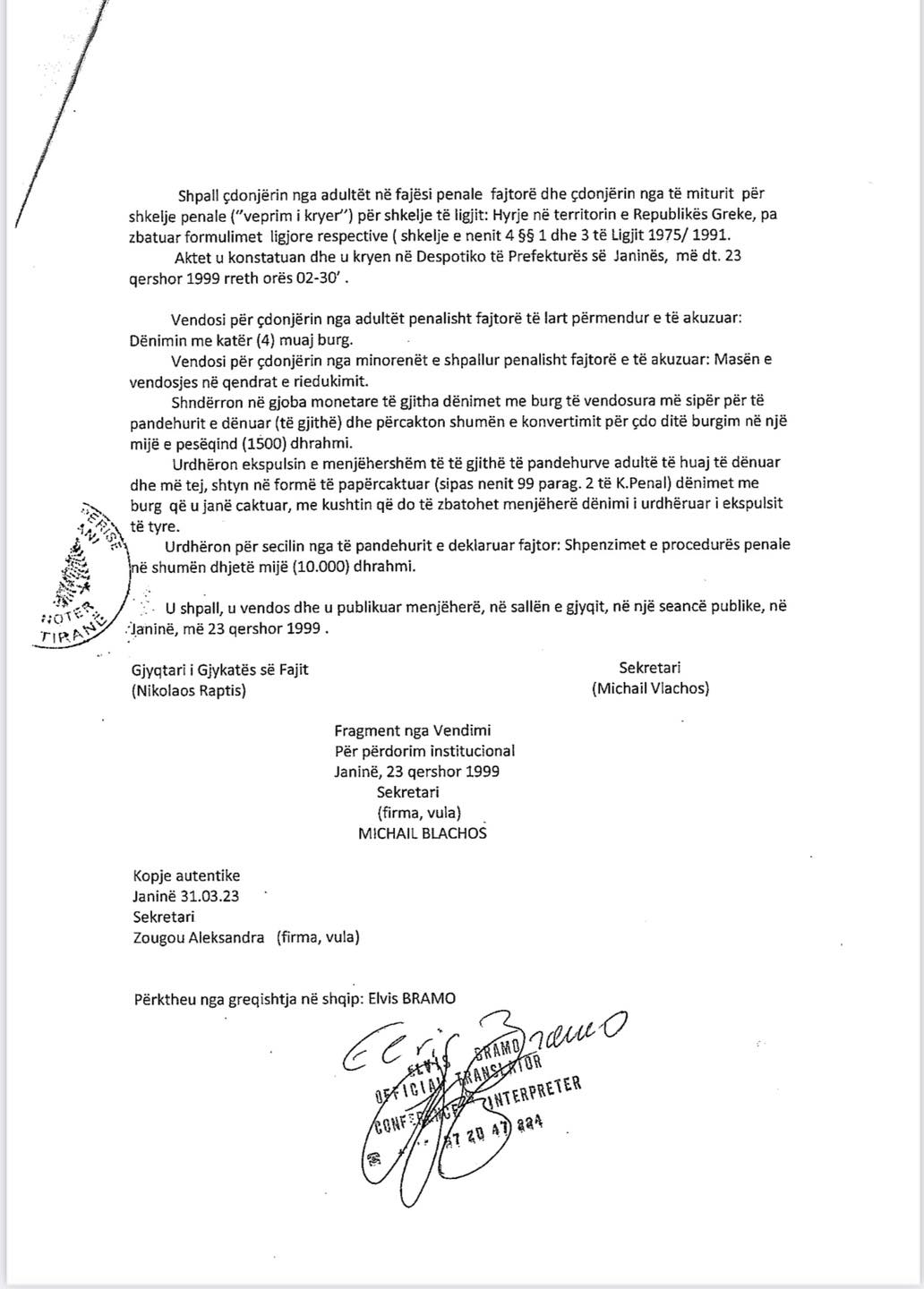 Materiali drejtuar KQZ por dhe Prokurorisë së Përgjithshme nga ana jonë ka qenë i plotë shoqëruar me vendimin e dënimit të këtij shtetasi.