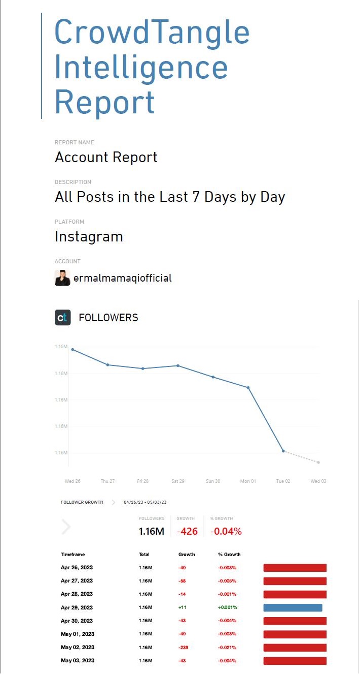 Ndërkaq Ermal Mamaqi ka humbur shumë nga aktiviteti i tij në rrjetet sociale, me -426 për qind të aktivitetit të tij, ndërsa gjatë gjithë javës ai e ka pasur në rënie të shpejtë.