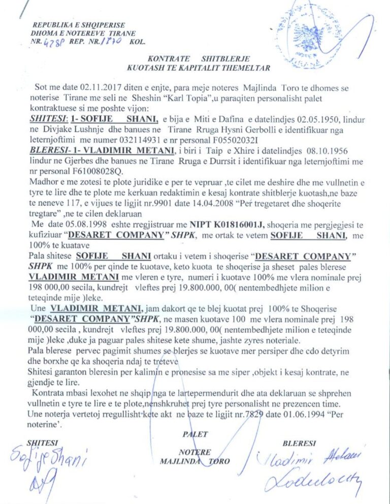 Daja i Ilir Metës, Vladimir Metani e themeloi kompaninë “Desaret Company”, me nipt K01816001J në vitin 1996 dhe ka marrë dhjetëra milionë euro para publike ndër vite, me ndikimin e Ilir Metës.
