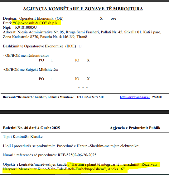 Dhe për këto merita, drejtoresha e AKZM i ka dhënë kompanisë Gjeokonsult & CO edhe kontratën për planin e Qafë Shtamës.