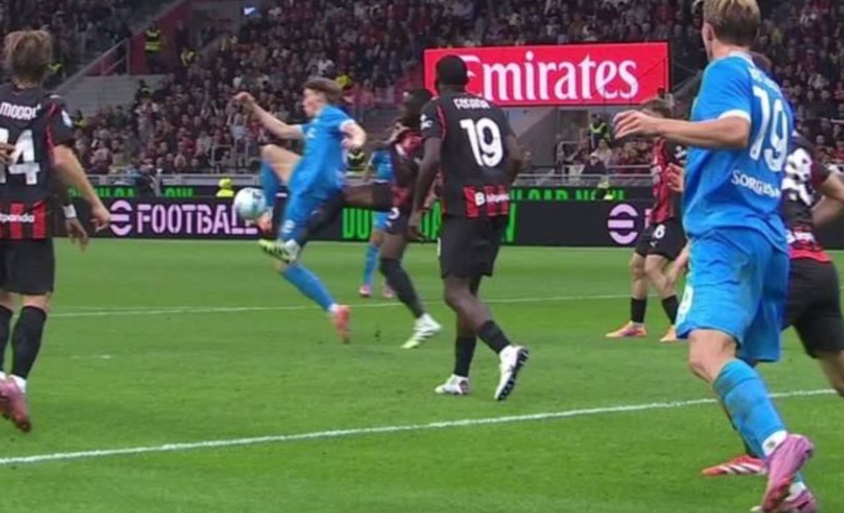 Fitorja 2-1 e Milanit ndaj Napolit nuk ka kaluar pa polemika, sidomos për një vendim që ka sjellë shumë kontestime të lojtarëve të skuadrës kampione në fuqi. Në pjesën e parë të ndeshjes, kishte një kontakt mes Fikajo Tomorit dhe Skot MekTominej në zonën kuqezi.