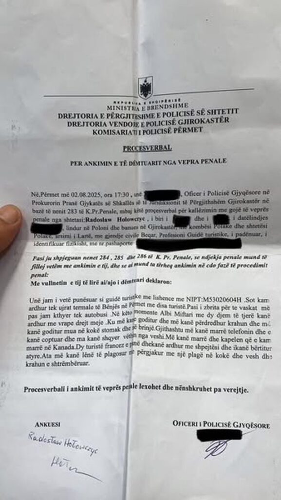 Si çdo të shtunë dhe më 2.08, 2025 udhëhoqa një udhëtim, një nga pikat e programit ishte një vizitë në ujërat termale rreth Përmetit. Pasi arrita në vend, i çova turistët në pishina dhe u ktheva te autobusi. Në zonën e parkimit, në një vend të izoluar të mbuluar me vegjetacion, ku nuk ka turistë apo kalimtarë, u sulmova nga Albi Miftari – bashkëpritës me Kinga Rosalia Stachóë të agjencisë së udhëtimeve Kaki Tours – dhe dy punonjësit e tij shqiptarë.
