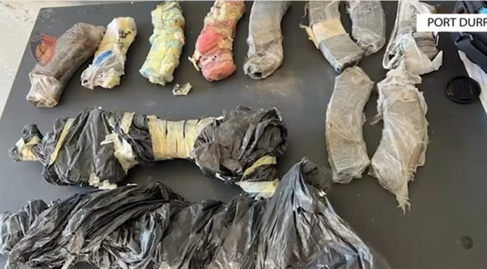 Nga veprimet hetimore dhe procedurale të kryera nga strukturat hetimore të DVP Durrës dhe asaj Kufitare të Portit Durrës për dokumentimin ligjor të kësaj ngjarjeje është bërë e mundur identifikimi dhe shpallja në kërkim e autorit të dyshuar të posedimit të armëve dhe të përfshirë në trafikimin e armëve dhe municioneve nga Kosova me destinacion Republikën Demokratike të Kongos.