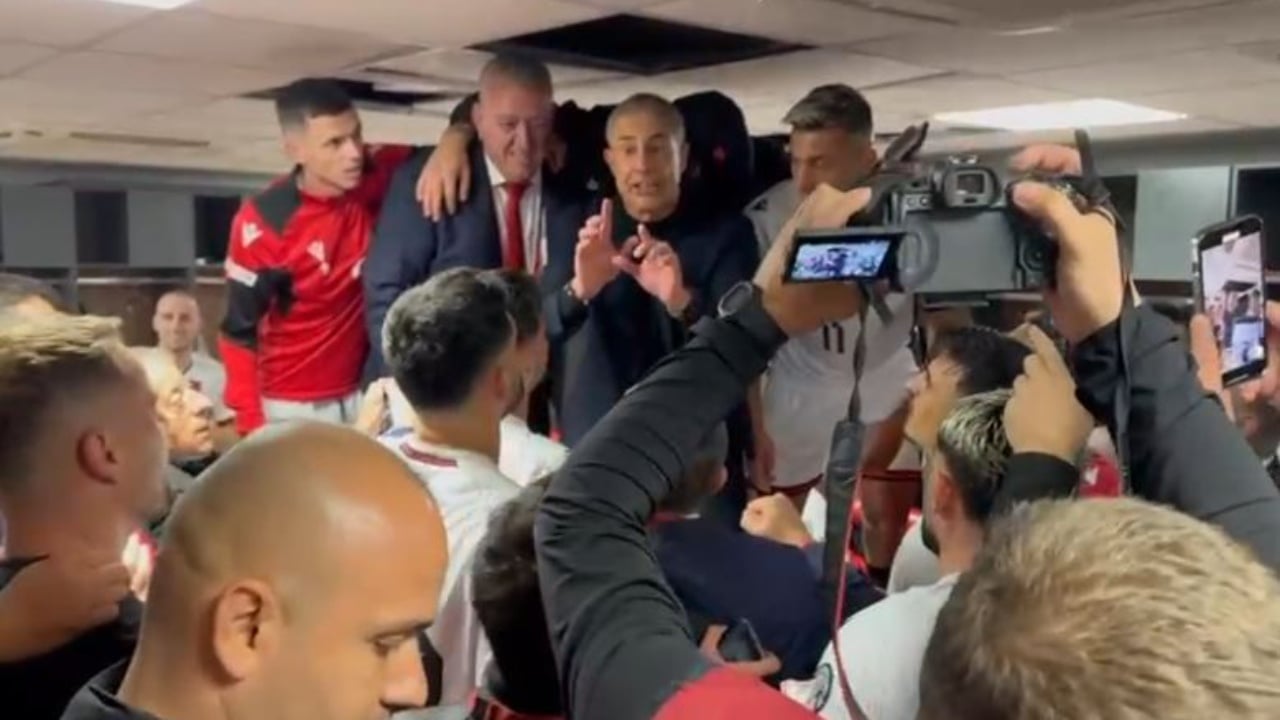 Pas fitores me Serbinë, një festë e çmendur “shpërtheu” edhe në dhomat e zhveshjes, aty ku u bashkua dhe presidenti i Federatës Shqiptare të Futbollit, Armand Duka.