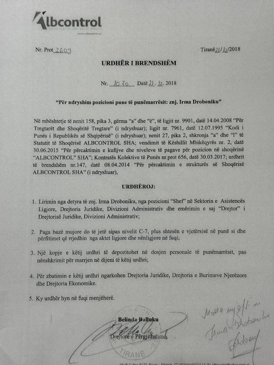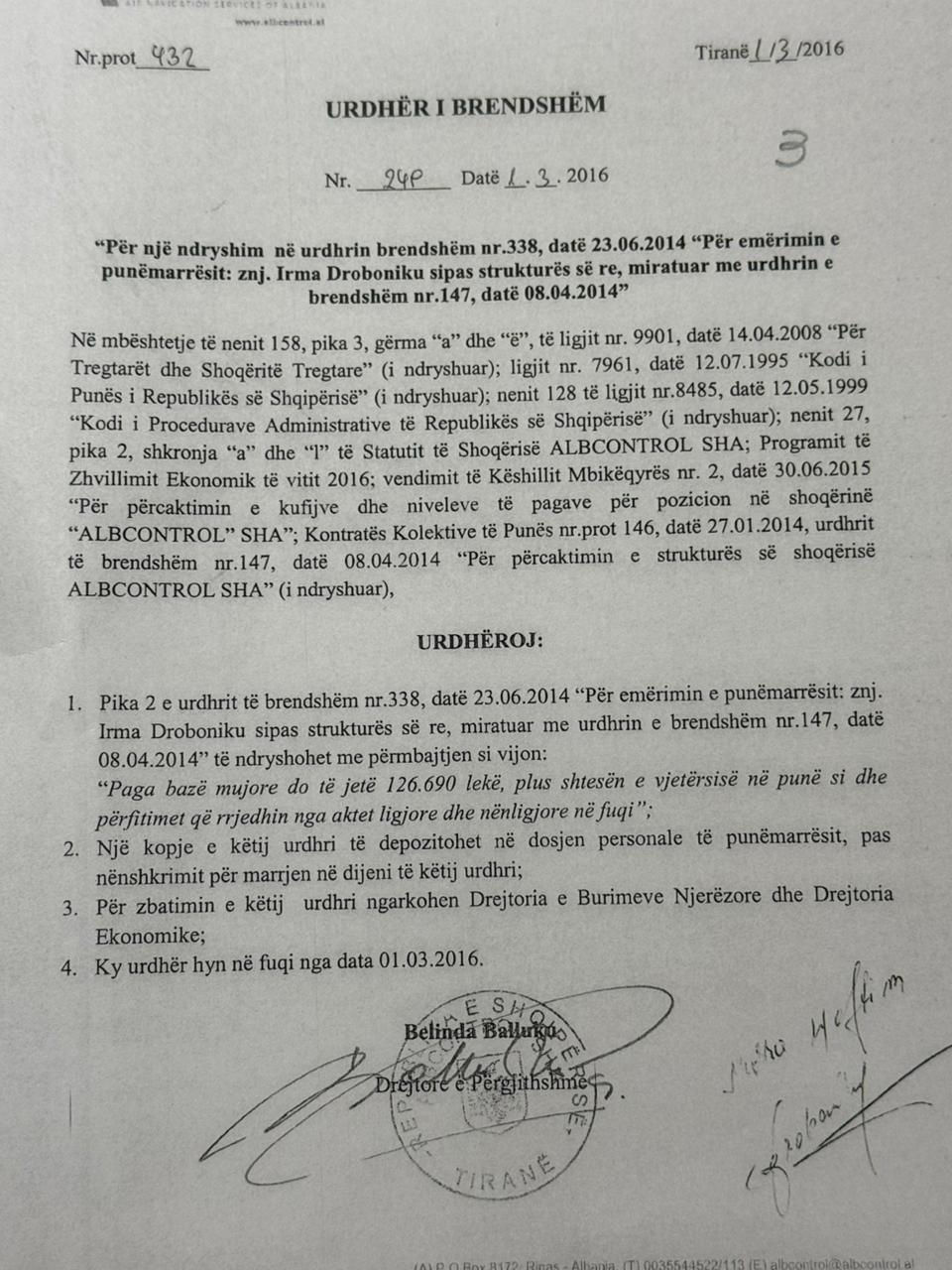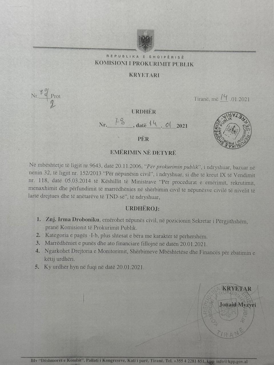 Dokumentet administrative të publikuara tregojnë se Irma Droboniku: