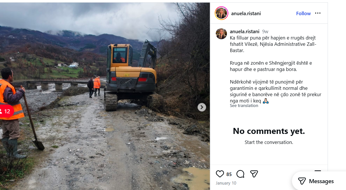 E ndërsa hidhte këto foto të punës së punonjësve për hapjen e rrugës për në Zall Bastar, Anuela Ristani gatuante një tjetër tender, që lidhet me këtë fshat.
