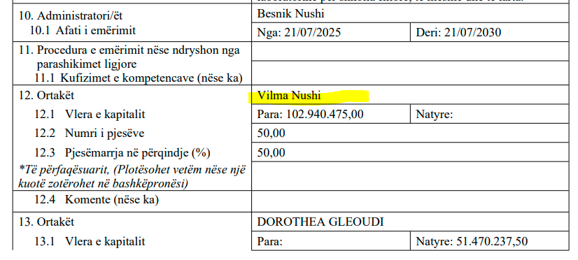 Në qershor 2025, SPAK bëri publik dokumentin e mëposhtëm, ku njoftohet fillimi improcedimit penal për Vilma Nushin.