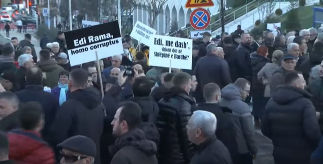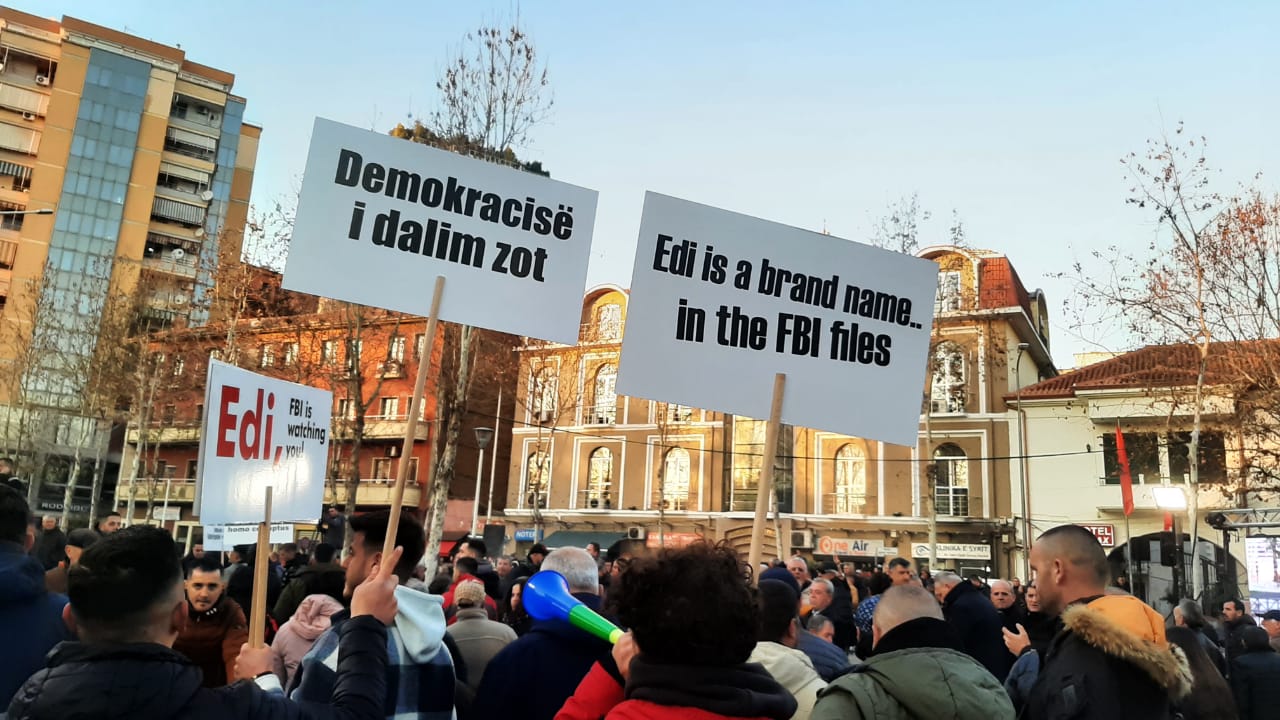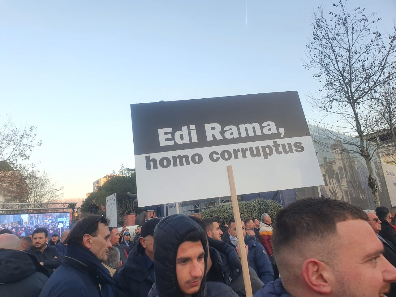 Me pankarta në duar ata kanë ironizuar megaskandalin “McGonigal” ku emri i kryeministrit Edi Rama del në korruptimin e ish zyrtarit të FBI-së.