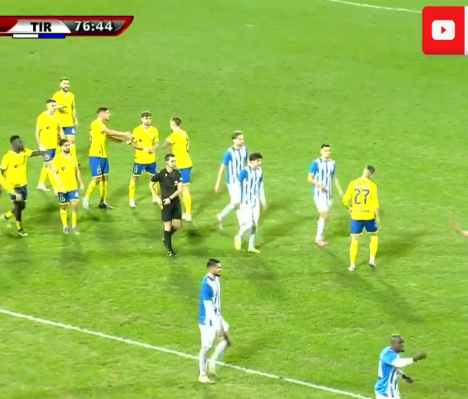 Trajneri Nuhiu përsëriti kërkesën, për të braktisur ndeshjen siç ndodhi në Durrës. Po ashtu gjatë kësaj kohe u panë edhe ofendime ndaj gjyqtarit Laver Alla. Sipas bardhebluve, penalltia nuk ishte. Tirana u rikthye disa minuta më vonë.
