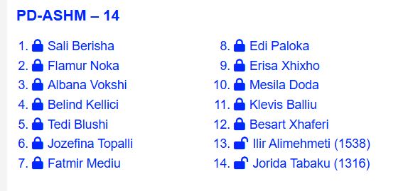Ndërsa nga PD, Ilir Alimehmeti rezulton më i votuar me 1560 vota ndërsa mandati i 14 deri tani mbahet nga Jorida Tabaku me 1358 vota. Ky mandat është në “lojë” mes PD dhe “Mundësisë”, kur duhen dhe 68 kuti votimi për tu numëruar.