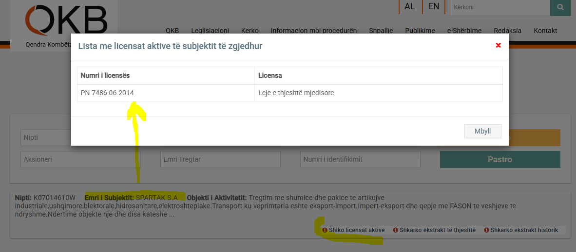 Ndërsa kompania “OUEN” shpk ka vetëm licencën “Shërbime të ekspertizës dhe/ose profesionale lidhur me pyje dhe/ose kullota”.