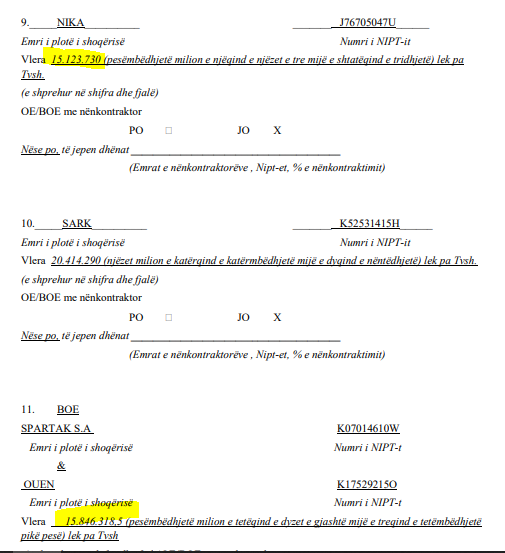 Nuk e kuptojmë se si komisioni i autorizuar nga Nexhipi në mes të 14 pjesëmarrësve gjeti kompaninë “Spartaku S.A” e Spartak Merakut dhe “Ouen” e Mehmet Hilajt. Njëri është pa përvojë në punë të tilla, tjetri i kapur disa herë nga KLSH për dëme që i ka sjellë buxhetit të shtetit nga moszbatimi i kontratave.