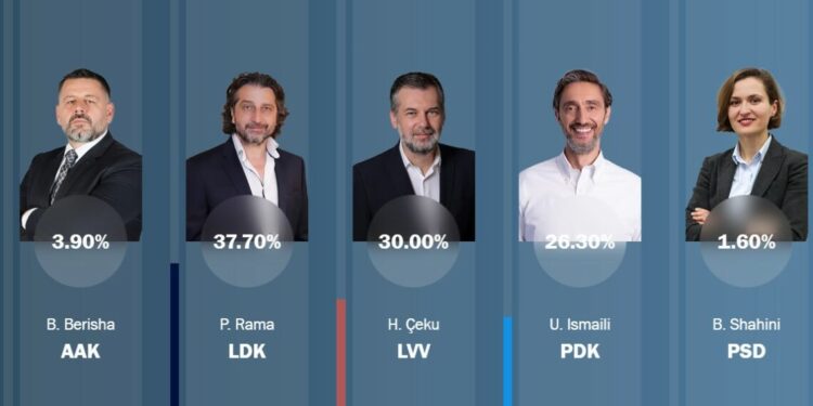 Nga exit poll-et e publikuara, rezulton se Përparim Rama nga Lidhja Demokratike e Kosovës dhe Hajrulla Çeku nga Lëvizja Vetëvendosje pritet të përballen në balotazhin e 9 nëntorit për udhëheqjen e Prishtinës. Sipas këtyre parashikimeve, Përparim Rama i LDK-së ka një epërsi të vogël ndaj Çekut.