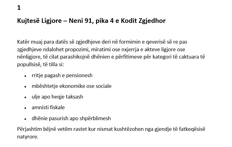 Një nga akuzat kryesore të Berishës ishte shpërndarja e mbi 6 mijë lejeve të legalizimit në kundërshtim me nenin 91 të Kodit Zgjedhor, për të cilin ai deklaroi se ndalon dhënien e përfitimeve për kategori të caktuara të popullsisë katër muaj para zgjedhjeve. Sipas tij, çdo legalizim përfaqëson potencialisht 3 deri në 5 vota të blera.