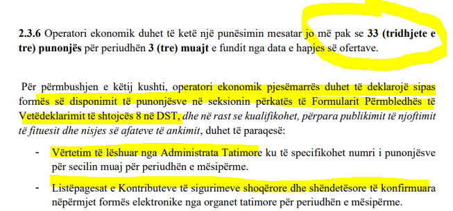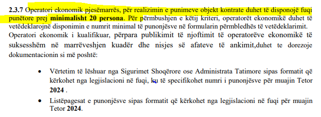Në përllogaritjen e numrit të punonjësve, komisioni ka marrë parasysh numrin e punonjësve që nevojitet për realizimin e objektit dhe afatin e kryerjes së punimeve të përcaktuar në dokumentet e tenderit, për periudhën 18 muaj.