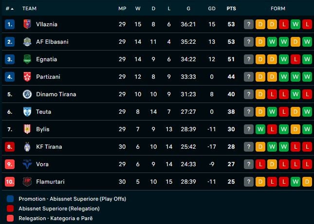Superliga shqiptare e futbollit nisi të premte me raundin e 30-të. Në Vlorë vendasit e Flamurtarit barazuan 1-1 kundër KF Tiranës në një ndeshje me polemika për penalltinë e akorduar në fund për vlonjatët.