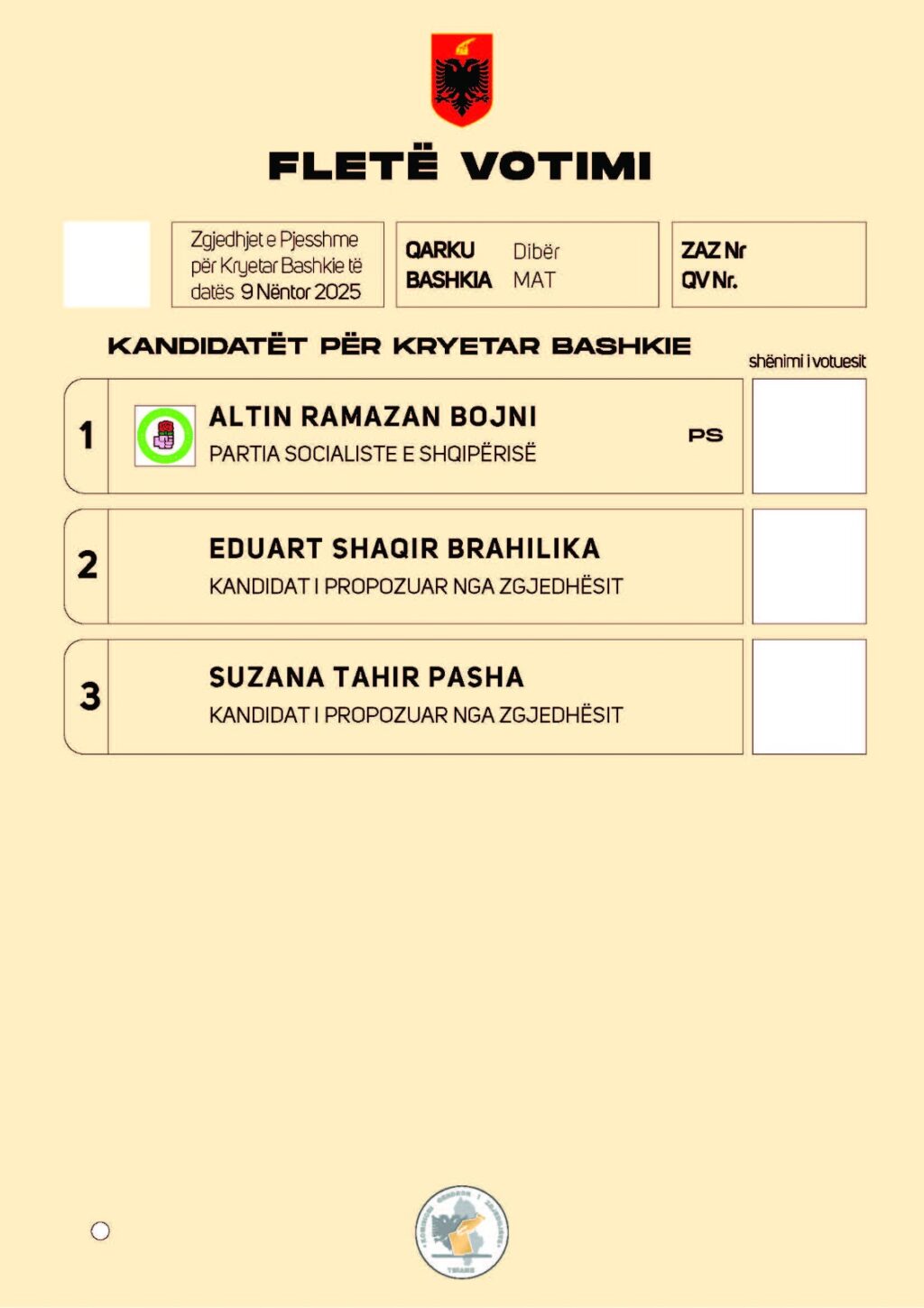 Në bashkinë Mat garojnë Altin Bojni i PS-së, Suzana Pasha e pavarur (kryetare e forumit të gruas së PS në Mat) dhe Eduart Brahilika i pavarur, i mbështetur nga opozita.