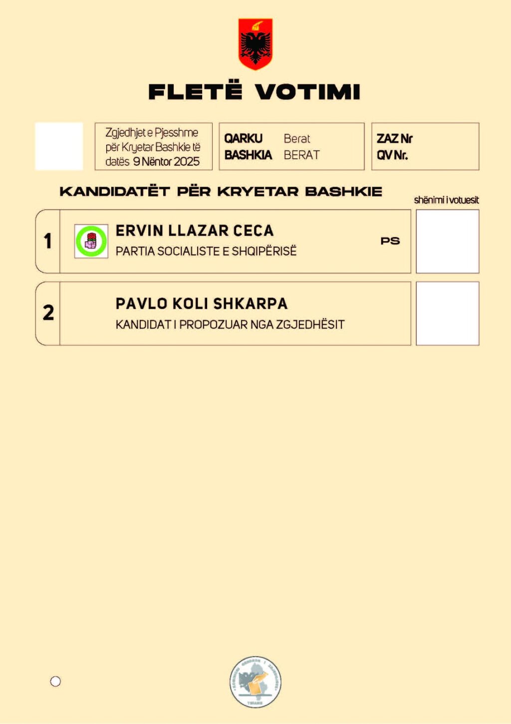 Në bashkinë Berat garojnë Ervin Ceca i PS-së dhe Pavlo Shkarpa i pavarur, i mbështetur nga opozita.
