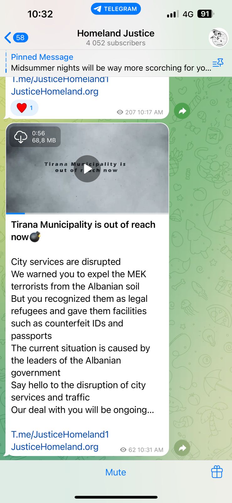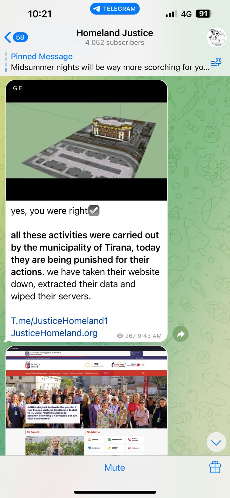 Në një postim të publikuar në kanalin e tyre në Telegram, hakerat shprehen: “Të gjitha këto aktivitete janë kryer nga Bashkia e Tiranës, sot ata po ndëshkohen për veprimet e tyre. Ne kemi rrëzuar faqen e tyre, kemi marrë të dhënat dhe kemi fshirë serverët.”