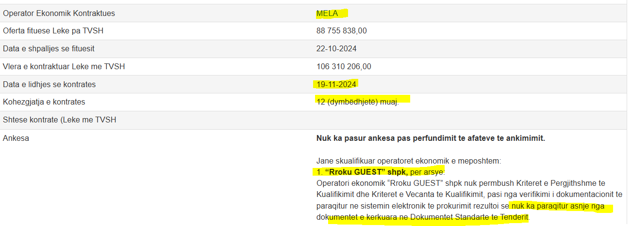 Edhe sikur “MELA” shpk t’i kishte letrat në rregull nuk mund të shpallej fituese sepse kishin shfaqur interes kompani më me eksperiencë, që kanë realizuar projekte të ngjashme.