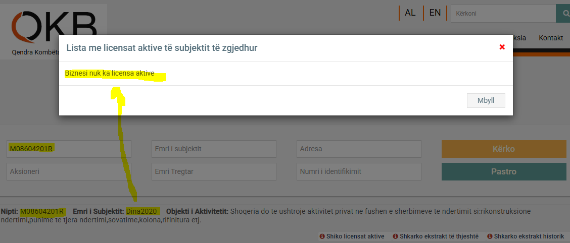 Për mbështetje në tenderin e Bashkisë Bulqizë, Mehdi Lala ka marrë firmën nga Kukësi “Dina2020” me pronar Fatmir Dinën. Kjo firmë, nga verifikimi që bëmë në QKB nuk ka asnjë lloj licence të regjistruar! Po ashtu, në CV e saj nuk ka asnjë projekt ndërtimi apo kontratë publike të realizuar më parë.