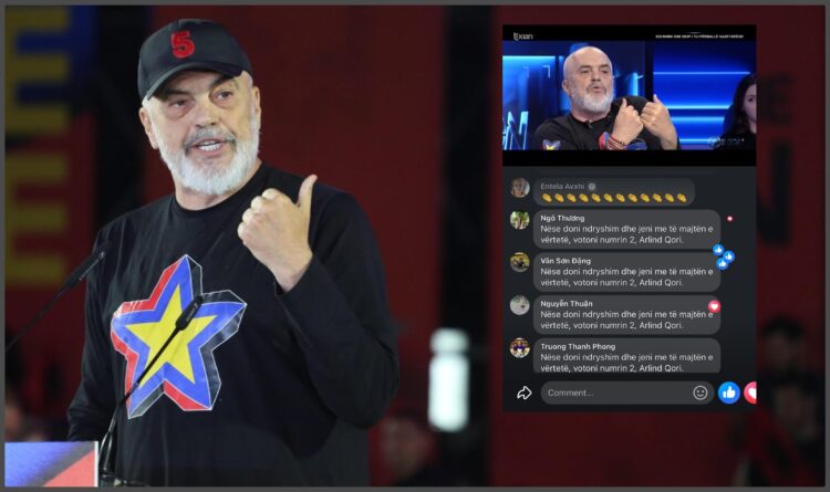 “Nëse doni ndryshim dhe jeni me të majtën e vërtetë, votoni numrin 2, Arlind Qori”, shkroi Ngô Thương, nga Vietnami. Mesazh që u replikua nga dhjetëra profile të ngjashme. Në faqen e Ramës u shënuan edhe mbi 1 mijë reagime që shprehnin zemërim, po ashtu nga profile prej Vietnamit apo vendeve të tjerë të Azisë.