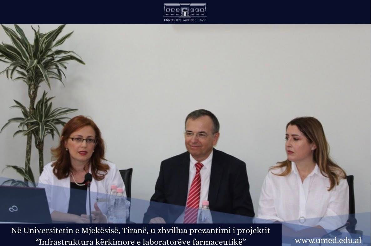 Në korrik 2025 në Universitetin e Mjekësisë, Tiranë, u prezantua projekti “Ngritja e infrastrukturës kërkimore laboratorike farmaceutike në Departamentin e Farmacisë, UMT”, i përzgjedhur për financim në kuadër të Programit të Infrastrukturës Kombëtare për Shkencën dhe Kërkimin.