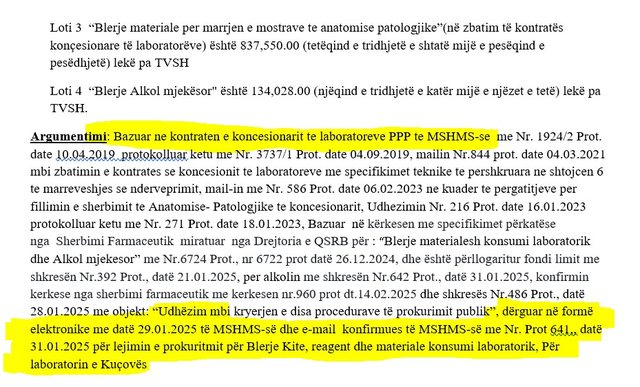 Përmendim rastin e fundit të Spitalit Rajonal të Beratit, i cili thotë se ka marrë disa udhëzime edhe në janar 2025, dërguar në formë elektronike me datë 29 janar 2025 nga Ministria e Shëndetësisë “për lejimin e prokurimit për blerje kite, reagent dhe materiale konsumi laboratorik”.