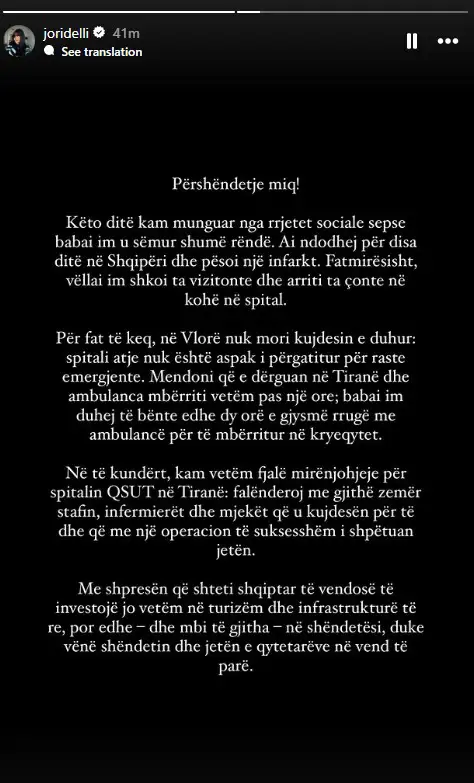 Jori Delli: Babai im pësoi infarkt, spitali i Vlorës nuk u kujdes