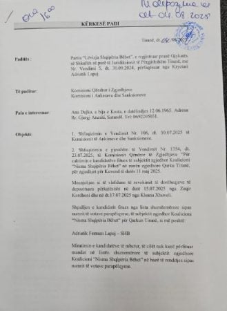 “Shqipëria Bëhet” thekson në shkresë se mandatin duhet ta marrë Adriatik Lapaj.