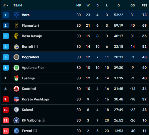 Tre javët në vijim do tregojnë se cila mes Pogradecit, Apolonisë, Lushnjës, Kastriotit apo Korabit do jenë në play-off, teksa Kukësi e ka humbur këtë shans dhe do garojë për të mbijetuar.