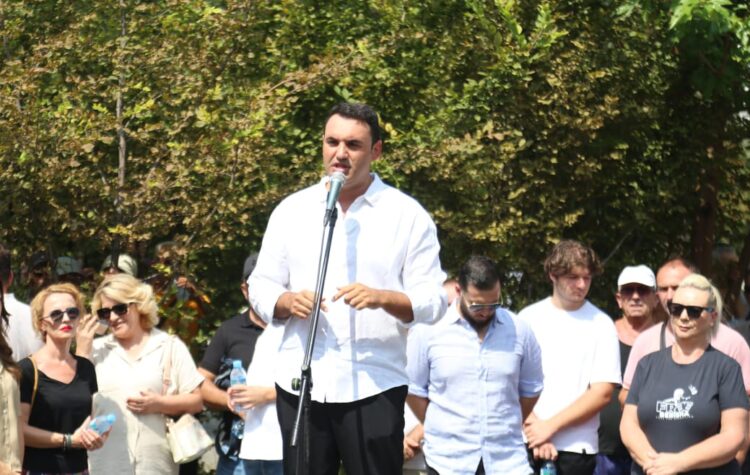 “Faleminderit për protestën e 23 para selisë së grupit të strukturuar kriminal 5D dhe pronarit faktik të inceneratorit të Tiranës që nuk ka më shqiptar që nuk e di e që quhet Erion Veliaj.