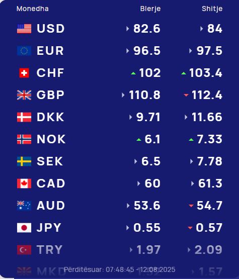Ndërsa paundi britanik do blihet me 110.8 lekë dhe do shitet me 112.4 lekë.