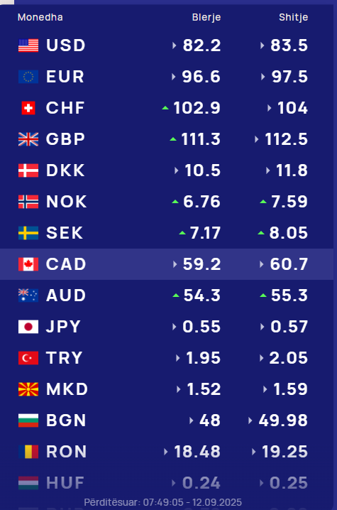 Ndërsa paundi britanik do blihet me 111.3 lekë dhe do shitet me 112.5 lekë.