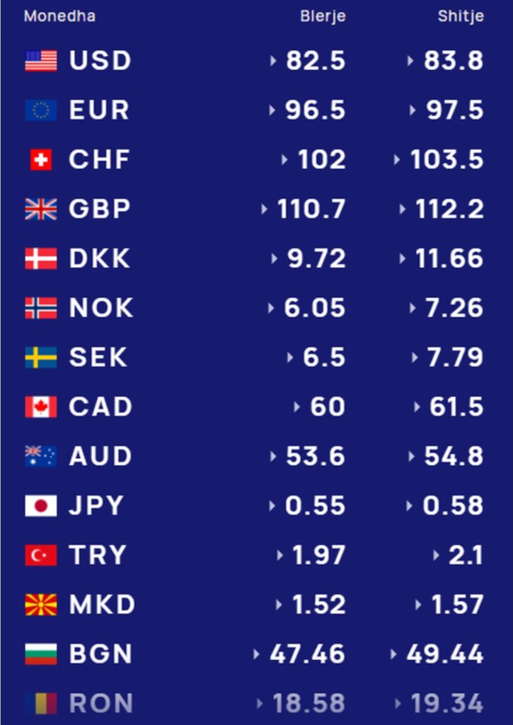 Më poshtë, po sjellim të dhënat e këmbimin valutor, për valutat e huaja kryesore: