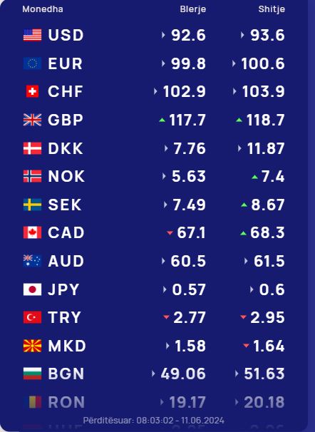 Ndërkohë monedha evropiane euro do blihet me 99.8 lekë dhe do shitet me 100.6 lekë.