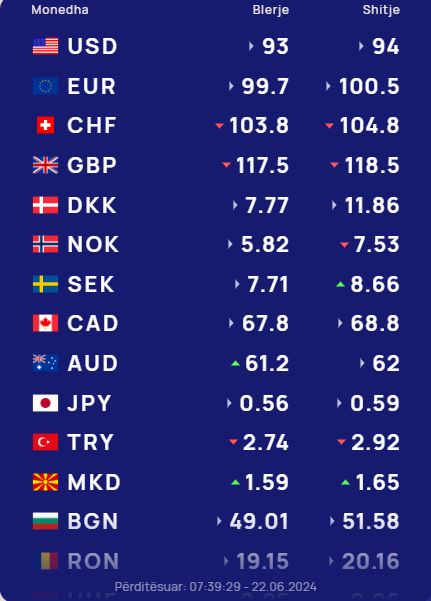 Ndërkohë monedha evropiane euro do blihet me 99.7 lekë dhe do shitet me 100.5 lekë.
