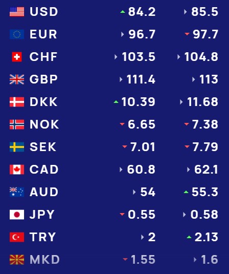 Kursi zyrtar i këmbimit valutor, 10 Korrik 2023