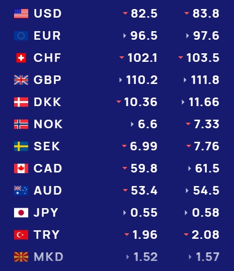 Ndërkohë monedha evropiane euro do blihet me 96.5 lekë dhe do shitet me 97.6 lekë.