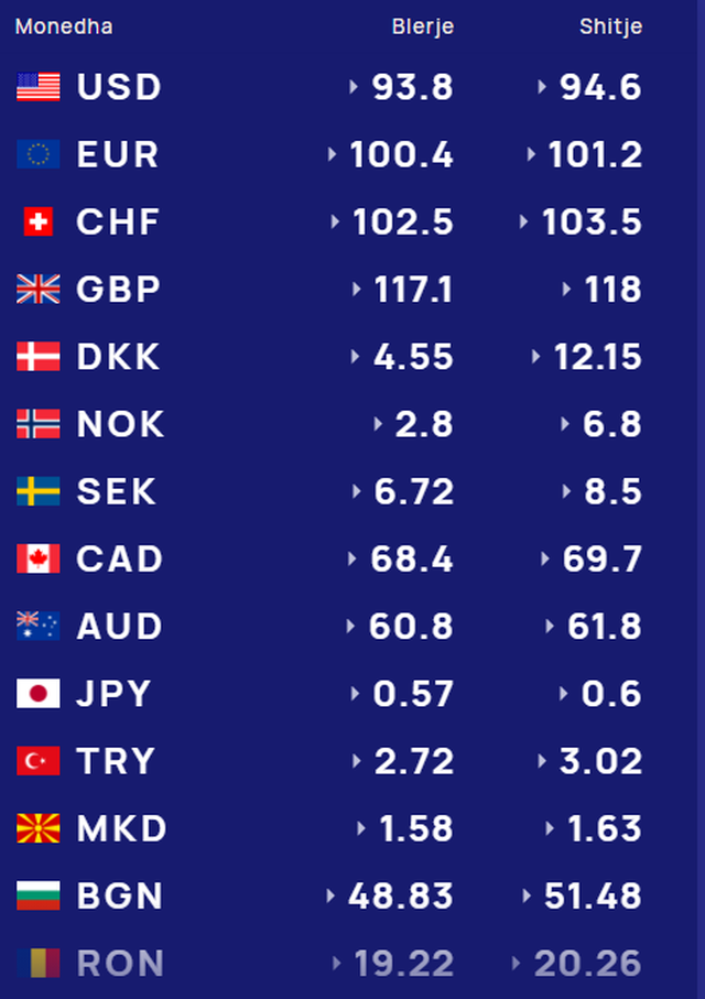 Më poshtë, po sjellim të dhënat e këmbimin valutor, për të gjitha monedhat e huaja: