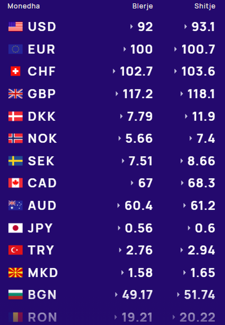 Më poshtë, po sjellim të dhënat e këmbimin valutor, për të gjitha monedhat e huaja: